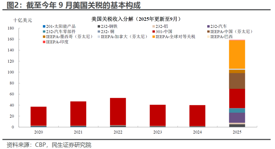 这本来就不宽裕的财政,现在还面临两个大问题:减税和关税违法。“大美丽”法案(“OBBBA”)的减税效果目前我们还没有看到:根据美国国会预算办公室的估计,由于生效时间的差异,OBBBA在2025年的效果是偏紧缩的(减税规模不如减支),2026年才会真正发挥效力。而最高法即将在11月初审议关税问题,届时如果被判违法,不仅未来原本有的关税会少一大块(我们预计规模至少有2000亿美元/年),今年已经收的对等和芬太尼关税都得“回吐”——按照CBP的测算,4-9月相关关税收入就有约900亿美元。