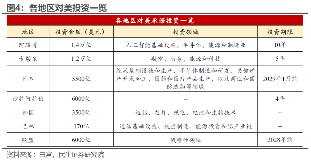 美国政府投资AI的空间有多大?白宫投资的方式主要有三个,拿财政的钱,号召企业花钱,以及“吸引”海外的钱。今年以来尽管白宫一直在鼓吹AI投资,但是主要的资金来源是企业(尤其是大型科技公司)——2025年的投资体量预计在3000多亿美元,如果由财政来出钱则意味着赤字率要上升超过1个百分点。当前政府主导的相关投资资金主要有两部分:一方面是来自于2022年拜登政府通过的《芯片与科学法案》授权资金超过2800亿美元(分5年拨款);另一方面是特朗普通过外交和谈判要来的资金,根据白宫公开的信息,这部分资金超过4.7万亿美元(不局限于AI投资),期限在5至10年内。如果这两项能足额兑现,则至少在特朗普还在位的几年内政府引导的AI投资会比较可观,当然这将依赖于特朗普的外交手腕。