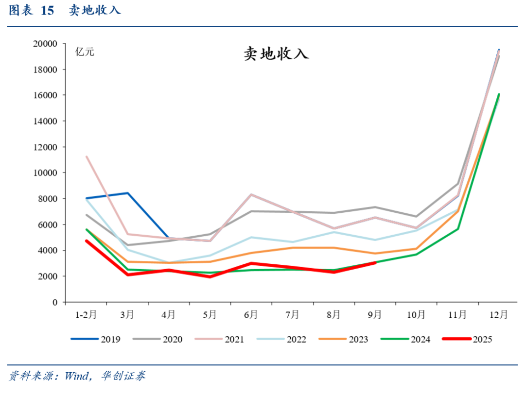 9月政府性基金收入增速转正(5.6%,8月-5.7%),主要是卖地收入降幅收窄(-1%,8月-5.8%),叠加税收单月增幅创年内新高(8.7%),使广义财政收入增幅转正(0.3%,7月3.6%)。