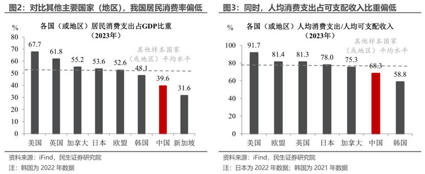 如何测算?根据四中全会规划,到2035年我国人均GDP将达到中等发达国家水平,而主要发达经济体在同时期的平均居民消费占比约在54%左右,这意味着我国居民消费率仍有14个百分点左右的潜在提升空间。