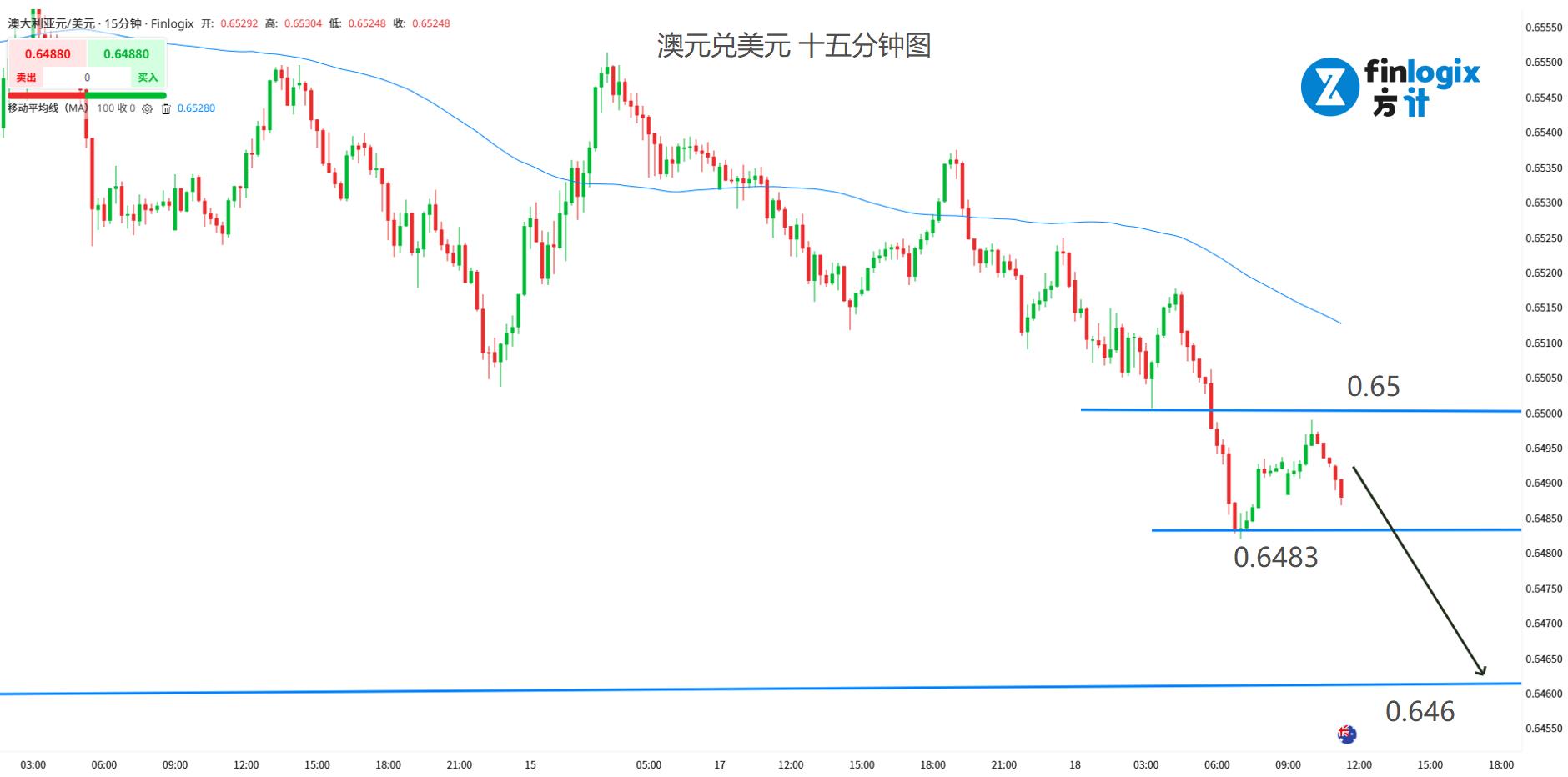 技术面:100均线向下,澳美跌破关键支撑0.6505关口,空头占据主导。日内交易策略以顺势跟空为主,考虑到美盘有地产数据,空单可以考虑在美盘前平仓。