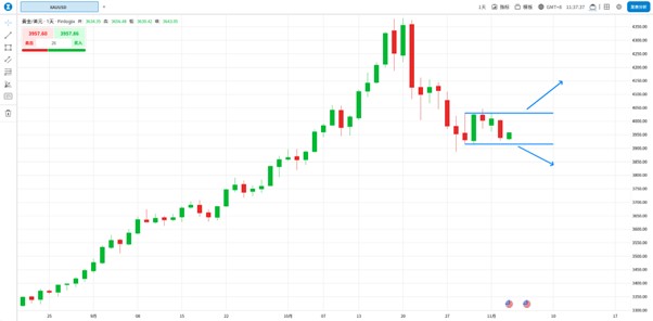 技术面:金价最近一周走势呈现大幅度胶着(3915~4030),目前金价走势偏中性看待,等待近期区间高低区间被突破指引作单方向。