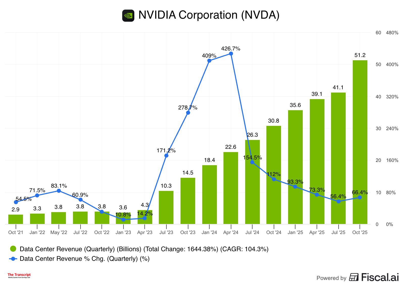 第三季交出亮眼成绩:EPS 1.30 美元、营收 570.1 亿美元,全数大幅超预期!资料中心营收高达 512 亿美元、年增 66%,Blackwell 与云端 GPU 需求爆满,打脸市场对 AI 投资泡沫的担忧。