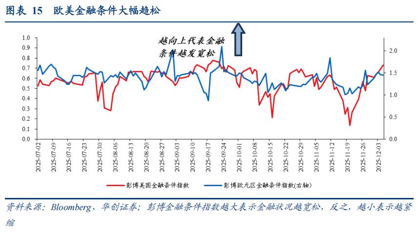 欧美金融条件大幅趋松12月5日,美国彭博金融条件指数为0.732,一周前为0.629,两周前为0.267。12月5日,欧元区彭博金融条件指数为1.455,一周前为1.237,两周前为1.028。