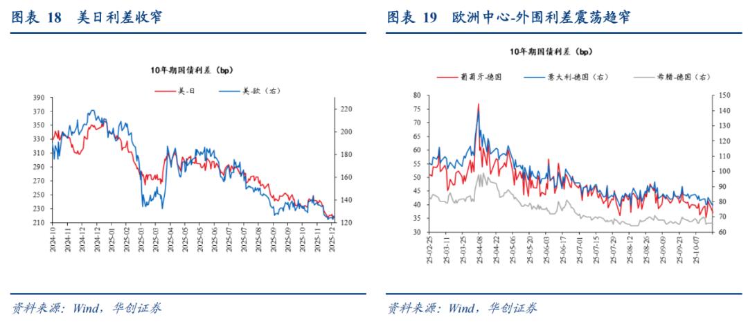 美日利差收窄。12月5日,10年期美日国债利差为218.9bp,上周为220.8bp。12月4日,10年期美欧国债利差为126.1bp,上周五约为124.6bp。