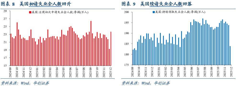 美国初请失业金人数回升,续请失业金人数回落。12月6日当周,美国初请失业金人数23.6万人,前一周为19.2万人,两周前为21.7万人。11月29日当周,美国续请失业金人数183.8万人,前一周为193.7万人,两周前为194.4万人。